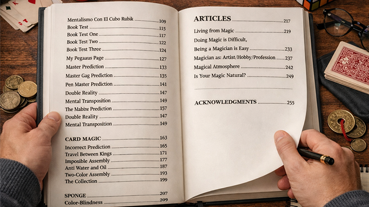 A book that teaches you magic and invites you to live it passionately. With 255 pages of unpublished routines and ideas built with ingenious structures, Smayfer opens his creative universe and shares wonderful effects with coins, cards, sponges, mentalism, and insightful articles that reflect his unique way of thinking and creating.