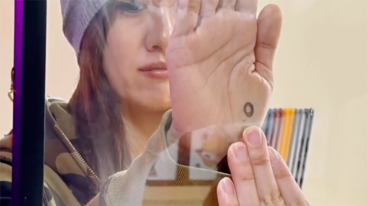 - In an instant, the mark visibly penetrates the glass...and appears on the spectator's hand.