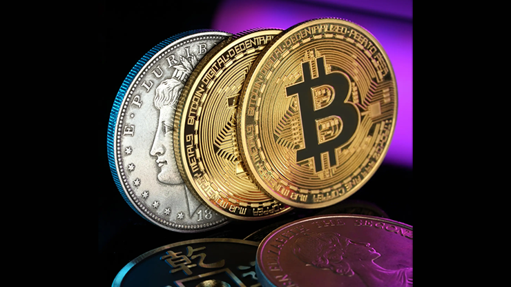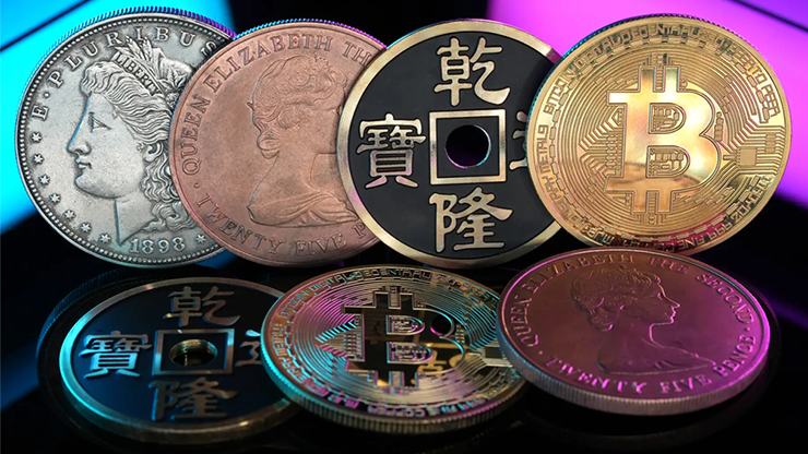 • Obsahuje morganový dolar, měděnou minci, antickou minci a bitcoin